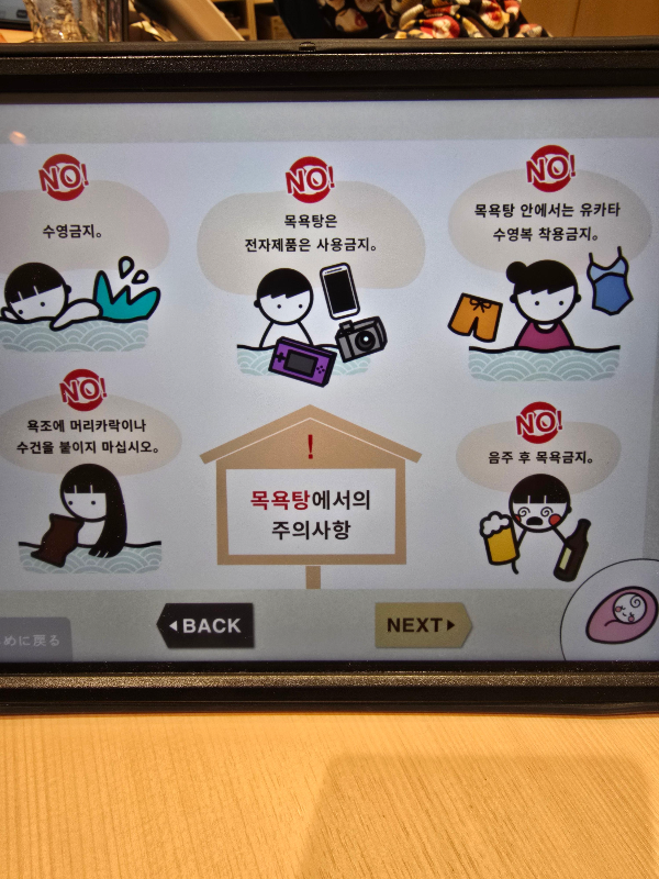 한국인들이 얼마나 많이 오는지, 유카타와 사용 시 주의사항들이 한국어로 표기되어 있고,